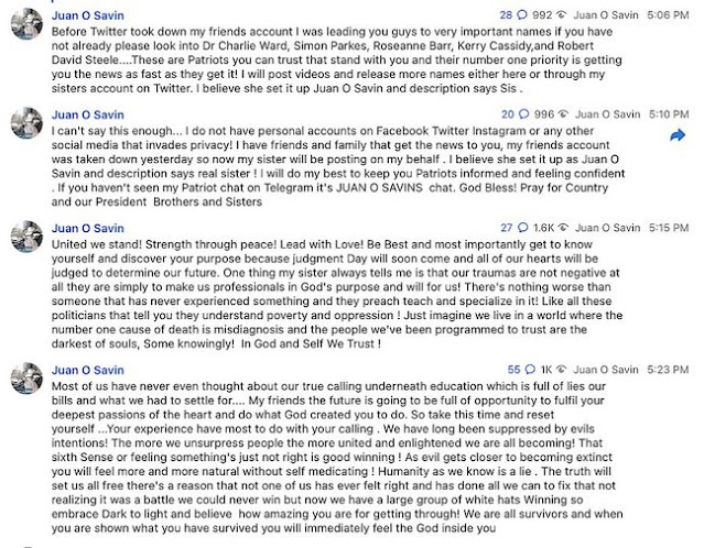 Juan himself, whomever he is, claims NOT to be on ANY Media accounts except Telegram. Here is his statement, written January 14, 2021: