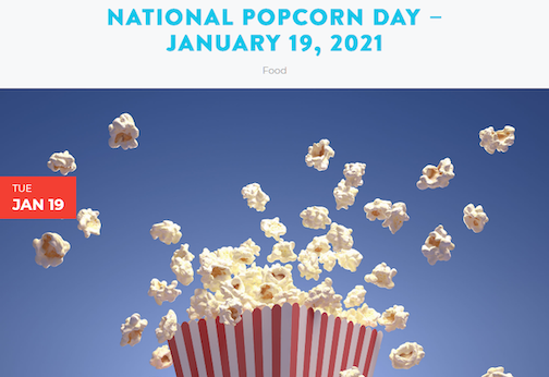 And here was a Tweet that got a lot of us laughing because, honestly, you can’t make this stuff up. January 19th is National Popcorn Day. Swear to God.