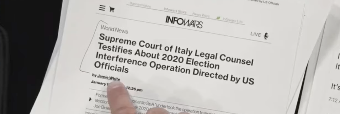 9:18 Alex Jones: It looks like Trump is leaving in 7 days. You’re saying this was a coup? [He points to some documents regarding the Italian part of the El/ection fr/aud]
