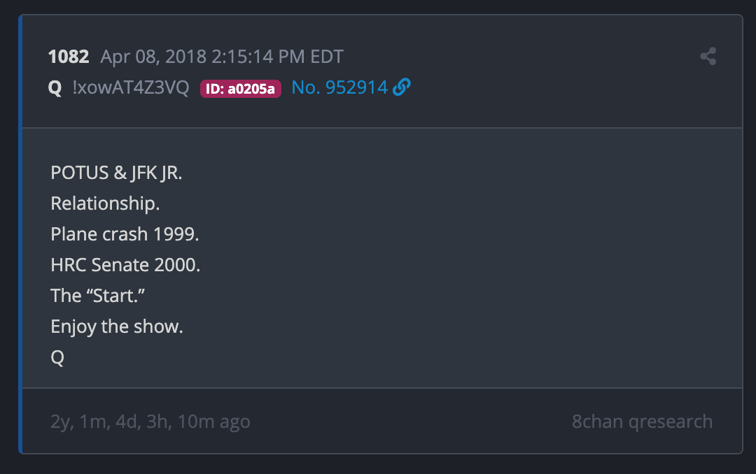 It doesn’t mean Juan is JFK, just that he’s acknowledging JFK is alive, as well as Q-post #1082.
