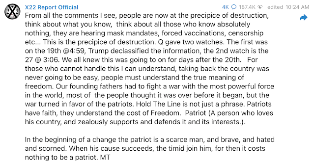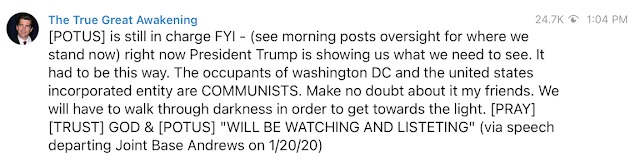 A few hours after the above was posted the next True Great Awakening post ended with: