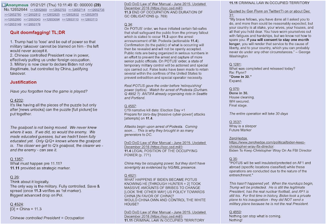 America is under Military Law, [Martial Law] so #1 the Inauguration was a complete fraud cuz I had it 11-hours before it “went out live.”