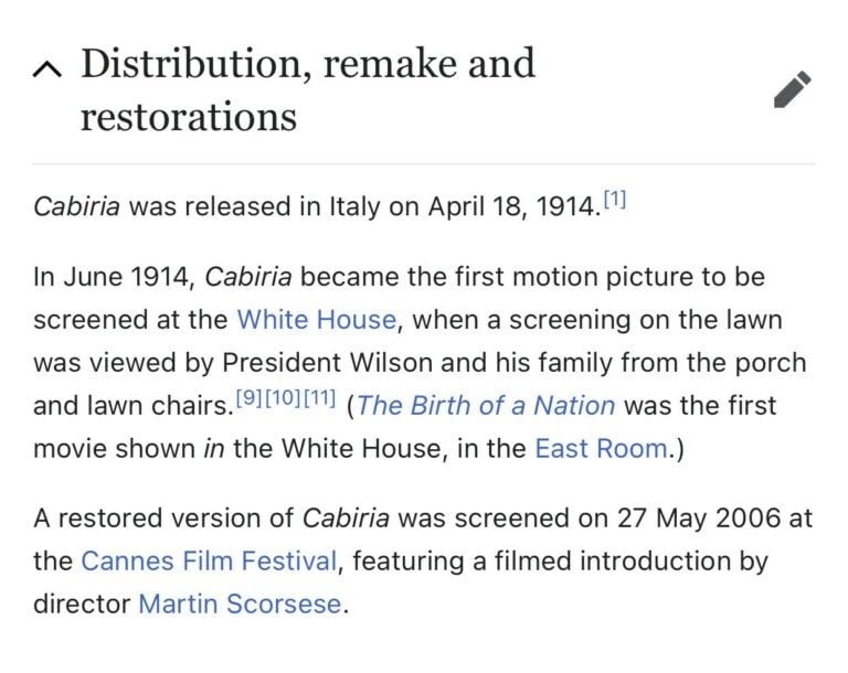 - IMDb and Wikipedia – Film description, director, and stars of Cabiria 1914 (views: 85)