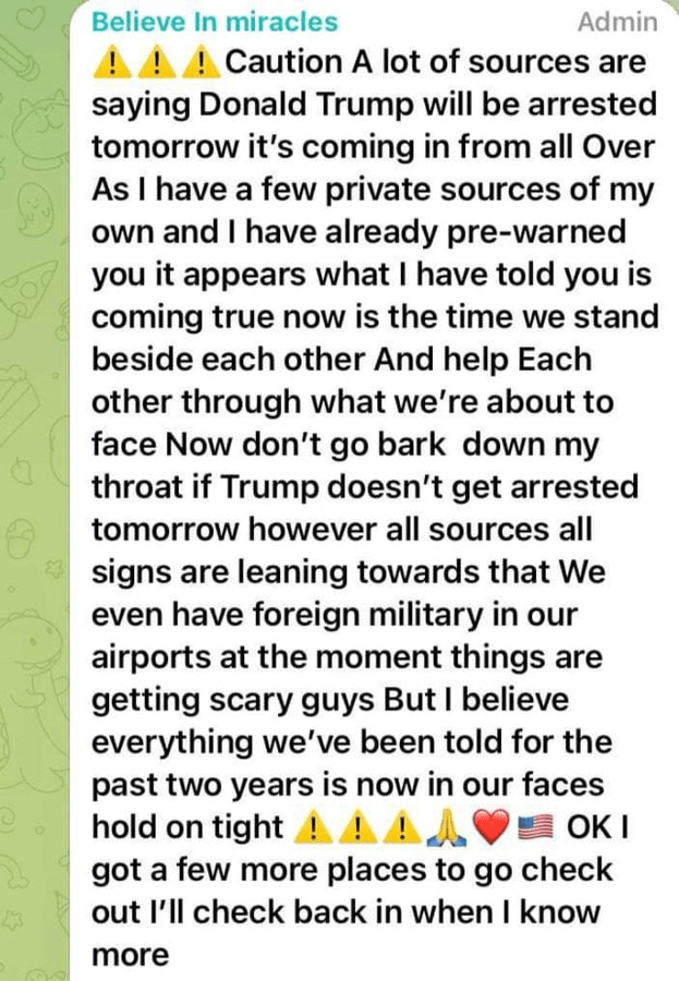Of course we know that just because a lot of things point to Trump being arrested, doesn’t mean he will be. The White Hats can put out whatever disinfo they like to manipulate a situation and throw off the enemy.