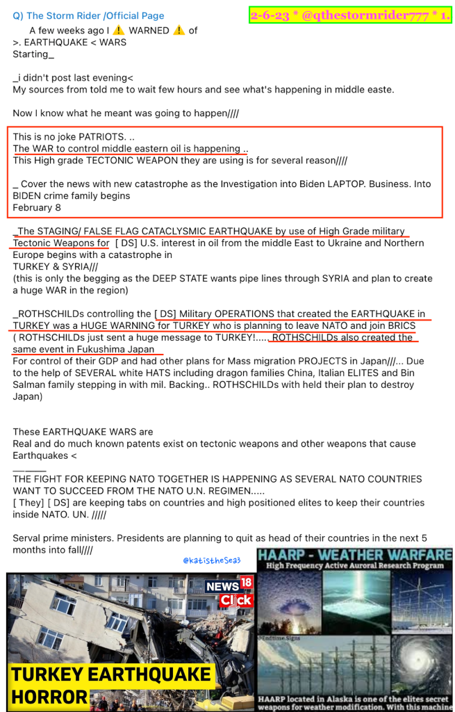 Kat Anonup Update(s): Q The Storm Rider – Earthquakes in Turkey, Deep State Tectonic Weapons