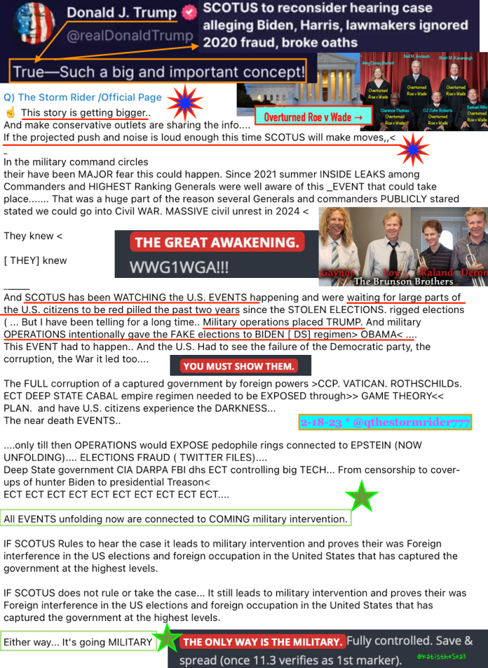 However — there is wonderful HOPE with the SCOTUS Brunson case from Q The Storm Rider, and President Trump has Truth’d TWICE about the Brunson case. Always a good sign.