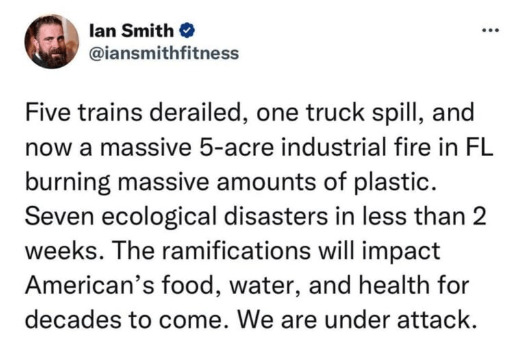 What seems to be going on is that real train derailments are taking place but that these are followed with exaggerated reports of toxic fumes etc. This is the pattern that was seen in Fukushima where a real detonation and real tsunami were followed up with extremely exaggerated reports about “the entire Pacific Ocean” being radioactive. The Rockefellers have a long history of this sort of operation.