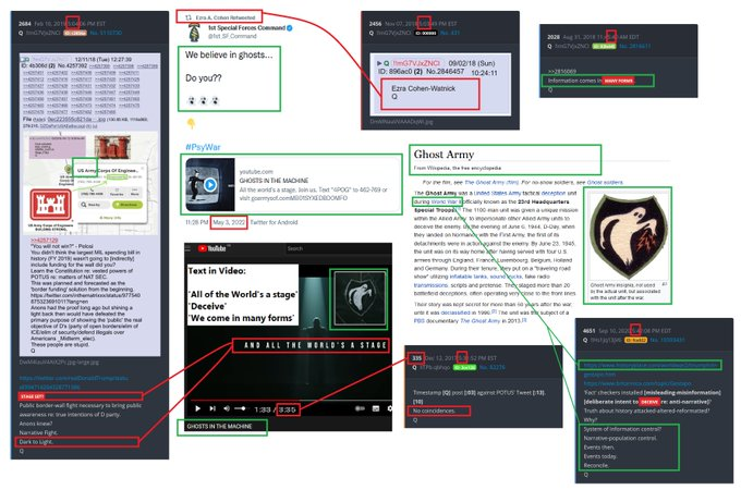 THREAD: Ezra Cohen-Watnick retweeted PSYWAR video from 1st Special Forces Command, and it’s LOADED with Comms. Most phrases flashing up connect to Drops, many to May 3/4 timestamps. ‘Ghost Army’ WW2 connect – fascinating stuff. ‘Inflatable Tanks‘ – one in the video Contd…