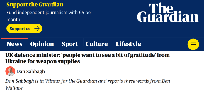 In response to this, the British Secretary of State for Defence suggested Ukraine needed to put more emphasis on saying “thank you” for western help.
