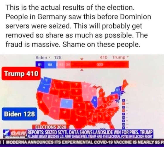 Mike Stone (henrymakow): See map of 2020 election results that were broadcast on German TV shortly before a Space Force raid took place. At that time, the election was already over
