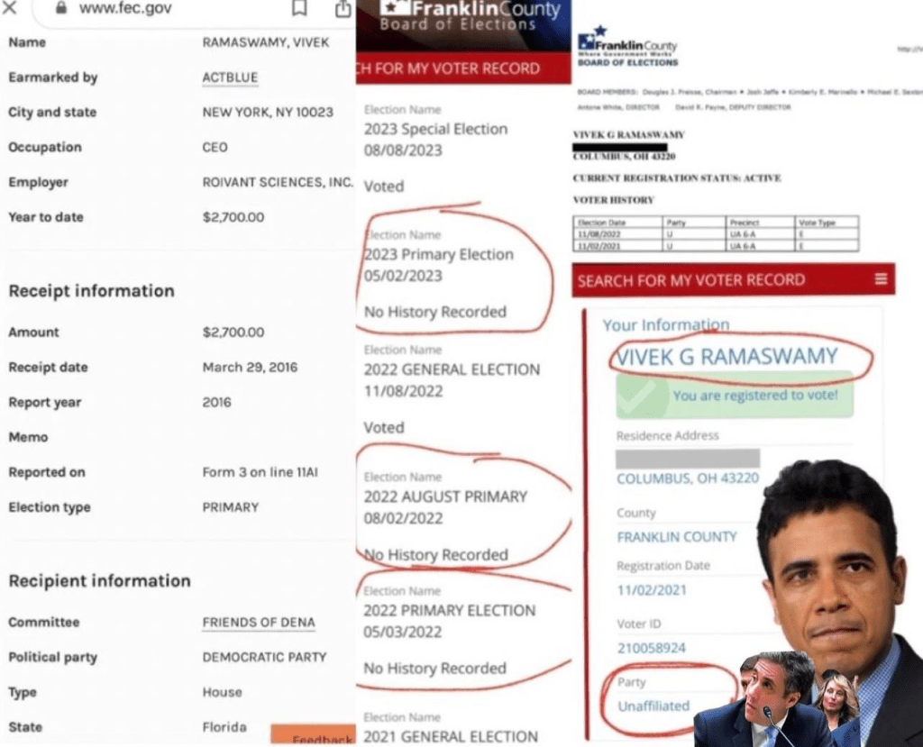 Odd… Presidential candidate Vivek Ramaswamy lives in Columbus Ohio, but not a registered Republican in Ohio…