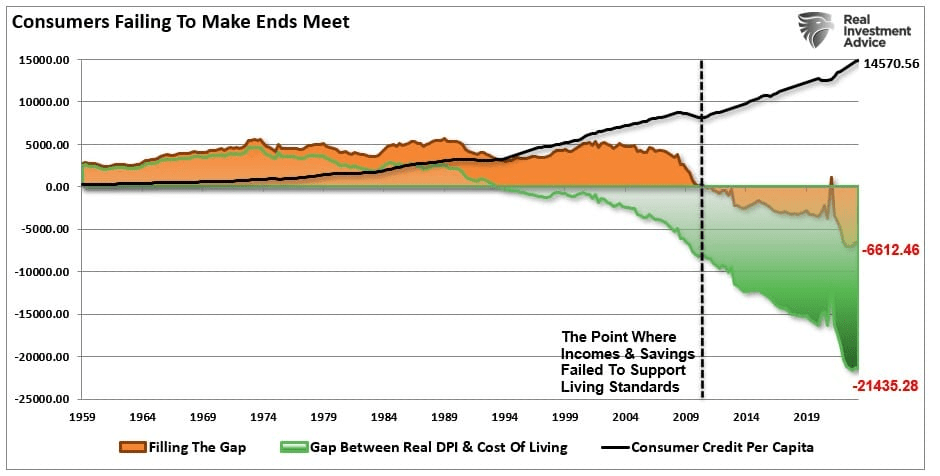 The chart below illustrates how Americans have been living in debt, ie out of touch with physical reality since 2006.