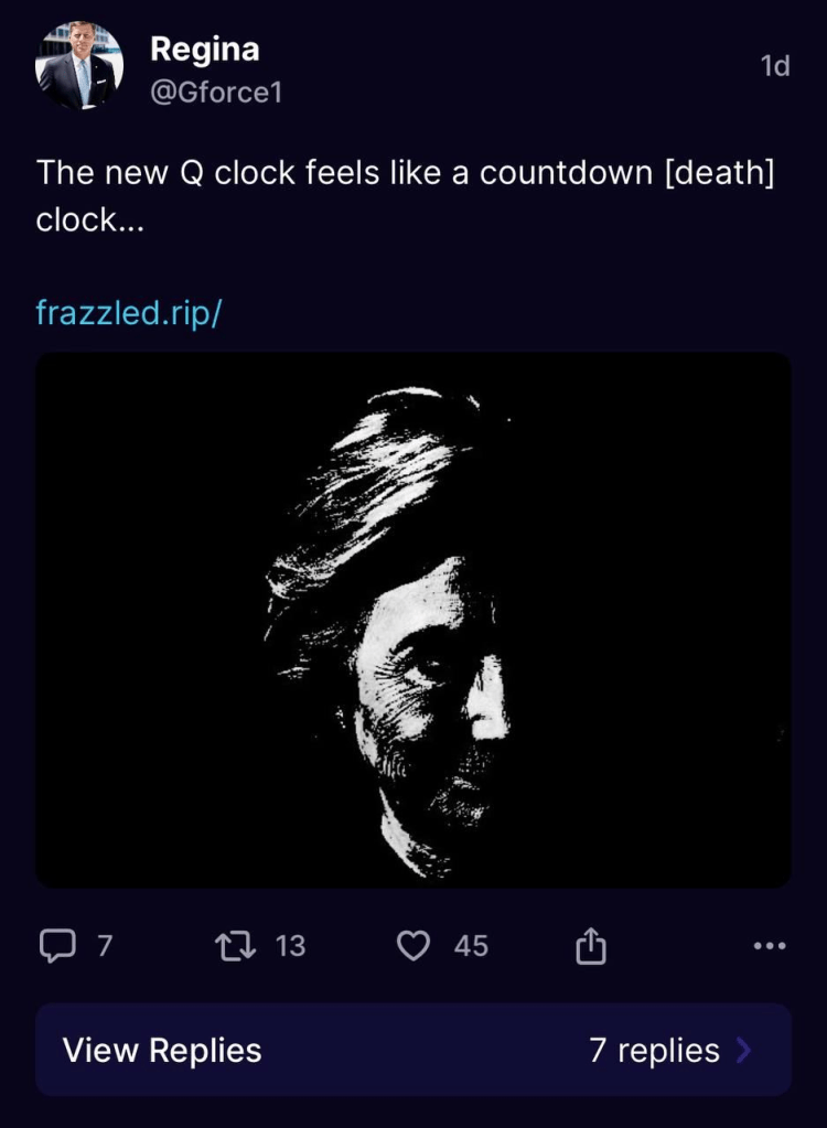 countdown to Rosalynn Carter’s deathCOUNTDOWN http://frazzled.rip/