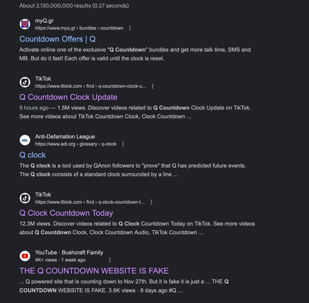 Q COUNTDOWN ALL OVER GOOGLE: