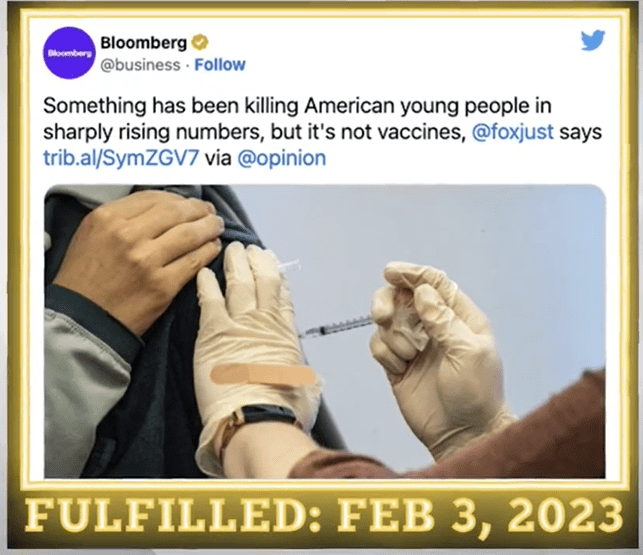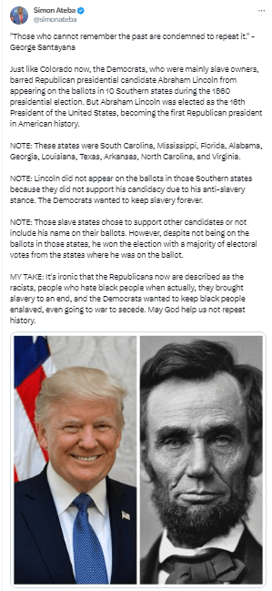 | Source: https://www.whatdoesitmean.com/index4475.htm~~~~~~~~~~~~~~~~~~~~~~~~~~~~~~~~~~~~~~~~~~~~~~~~~~~Trump Proclaims “I Am Your Retribution” As Biden Nightmare Nears Reality“I am not the nightmare created by your denial of the nightmare that you created.”Cited quote is by Craig D. Lounsbrough, who is a Christian councilor of children and adolescents practicing in the United States.Special Report from Sister CiaraMy Dearest Friends:I noticed with astonishment the Washington Post article published today entitled “Colon Cancer Is Rising In Young Americans. It’s Not Clear Why”, and it was astonishing because, in April-2022, the American medical study “Gastrointestinal Complications of COVID-19 Vaccines” was released, wherein it warned: “In this case report, we present the first documented case report of post-vaccination acute diverticulitis and colon micro-perforation following Moderna booster dose (Moderna Inc, Cambridge, USA) in a young adult…Vaccine recipients should be educated on vaccine-associated gastrointestinal (GI) adverse events in order to reduce morbidity and mortality”.Nearly always first among those calling out such leftist media distortions and outright lies, like the Washington Post exhibited today, is the Babylon Bee, whose about page “Your Trusted Source For Christian News Satire” reveals:The Babylon Bee is the world’s best satire site, totally inerrant in all its truth claims. We write satire about Christian stuff, political stuff, and everyday life.The Babylon Bee was created ex nihilo on the eighth day of the creation week, exactly 6,000 years ago. We have been the premier news source through every major world event, from the Tower of Babel and the Exodus to the Reformation and the War of 1812. We focus on just the facts, leaving spin and bias to other news sites like CNN and Fox News.If you would like to complain about something on our site, take it up with God.Last evening, America’s most trusted and popular newsman Tucker Carlson released his interview of Babylon Bee founder Adam Ford, wherein it was factually noted how this Christian satirical site had published nearly a hundred prophesying articles, with the first example being the Babylon Bee article “Experts Say They’d Don’t Know What Thing Is Causing Everyone To Suddenly Collapse, But It’s Definitely Not That One Thing”, that was followed by the leftist mainstream Bloomberg article “Something Has Been Killing American Young People In Sharply Rising Numbers, But It’s Not Vaccines”.Tucker Carlson Uncensored Ep. 55 https://rumble.com/v4284kt-tucker-carlson-uncensored-ep.-55.htmlhttps://rumble.com/embed/v3zmreb/?pub=15u3sx ![]() In an America today where articles abound like “The Media Bubble Is Worse Than You Think” and “Democrats And Republicans Do Live In Different Worlds”, you should know that socialist Democrats and their lying leftist media allies live in a bubble based on “projection”, which is the attribution of one’s own ideas, feelings, or attitudes to other people, especially the externalization of blame, guilt, or responsibility as a defense against anxiety, while Christian news sites rely on the principles of openness, as best explained in the article “Jesus Was Exclusively Inclusive”:Back in Jesus’ time, a respectable Jewish teacher wouldn’t dare consider taking a female student under his instruction. He would also not engage with someone who had a chronic illness or disability, since it was believed to be a testament of poor character and lineage. And never mind having dealings across the ethnic and political barriers that existed then. That, too, was a no-no.Yet, Jesus—who, as a religious Jewish teacher, had these expectations tenfold—didn’t follow any of these rules. In fact, he went out of his way to break them.Jesus sought to include everyone in his ministry, giving them a place to belong by treating all with value and respect.Many of his most frequently quoted messages and standout stories happened while sharing a meal with others. As we looked closer, we noticed that his company around the table was a remarkably diverse cast. He shared meals with outcasts. He spent time with the self-righteous religious elite.He cared for people who had broken every rule and were seen as unclean. He dined at the tables of the wealthy men whose riches were won with lies and corruption. Some of those men gave up comfortable lifestyles to follow him. He crossed racial boundaries to the shock of many around him. He invited everyone to the table.When asked why he did so, he replied, “… I came into the world, to testify to the truth. Everyone on the side of truth listens to me.” For everyone “on the side of truth”, it has long been known: “Since its founding in 1829, the Democratic Party has fought against every major civil rights initiative, and has a long history of discrimination, defended slavery, started the Civil War, opposed Reconstruction, founded the Ku Klux Klan, imposed segregation, perpetrated lynchings, and fought against the civil rights acts of the 1950s and 1960s”.And for those knowing the truth about the racist history of the socialist Democratic Party, it came as no surprise when Democrat judges in Colorado knocked Republican Party candidate President Donald Trump off the ballot this week—most particularly because they did the same thing to the first Republican Party presidential candidate Abraham Lincoln in the 1860 election, and as documented in articles like “The Last Time Democrats Took a GOP Candidate Off the Ballot Was in 1860 – They Would Not Allow Abraham Lincoln’s Name on the Ballot in Their Slave States”.Tucker Carlson on Trump Colorado Ballot Removal: ‘The ACTUAL End of Democracy’https://rumble.com/v4284kt-tucker-carlson-uncensored-ep.-55.htmlhttps://rumble.com/embed/v3zty6k/?pub=15u3sx With socialist Democrats and their lying leftist media allies existing in a bubble based on “pro