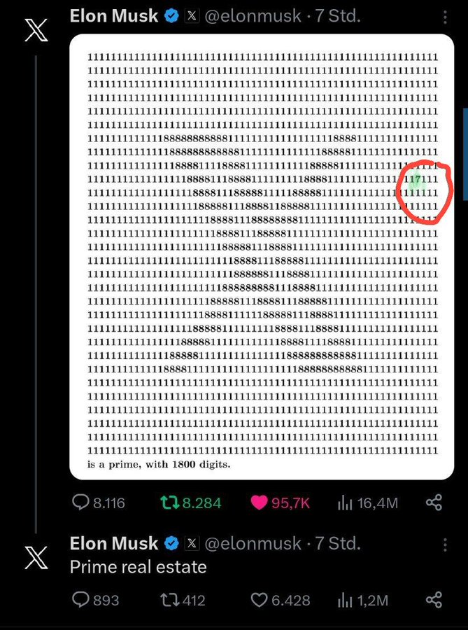The World is watching Mr. Musk❗️ 17 on the right in the 10th row. Look closly Anons. 12/25/2023 1+2+2+5+2+2+3 =17=Q ‘X’ A lot of ones, a lot of 8s & a (1)7 8=Infinity (Q)Bit 👇YOU WILL BELIEVE👇 https://twitter.com/Suspended1717/status/1703094739417833536?t=Bozy7mYX9hNLCUbEEC1Xcg&s=19