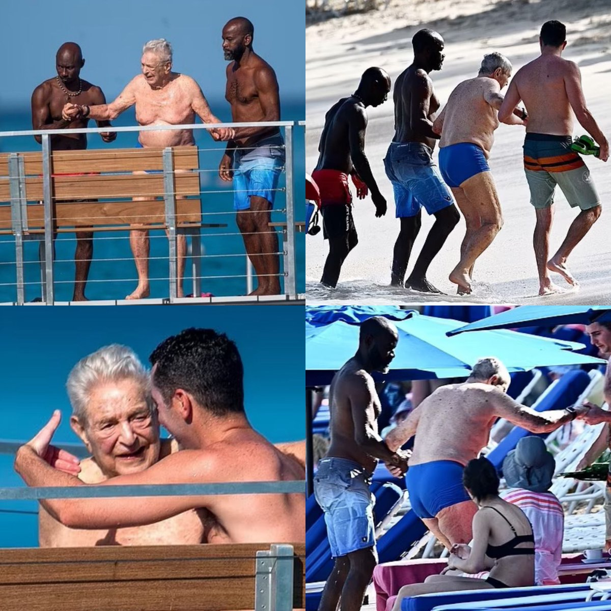 For your titillation, we have attached an old photo of his executed father George Soros in Barbados with his “helpers” who are not his secret gay lovers.