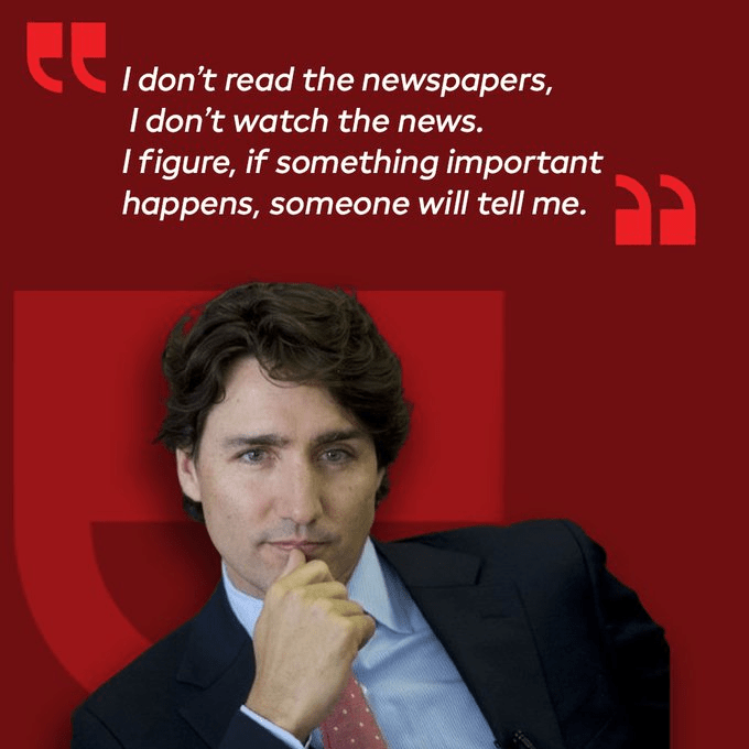 North of the 49th, they are using the fake Turdeau to mirror back to people a typical response when we try to tell them the alarming truth about what is happening in the world. I can tell you that people I know have said this very thing to me. They just want to enjoy their life and if anything important happens they trust someone will tell them. It’s ALL important! They have been lulled into a false sense of complacency and think an election or some minor adjustments to tyranny will fix things, I guess.