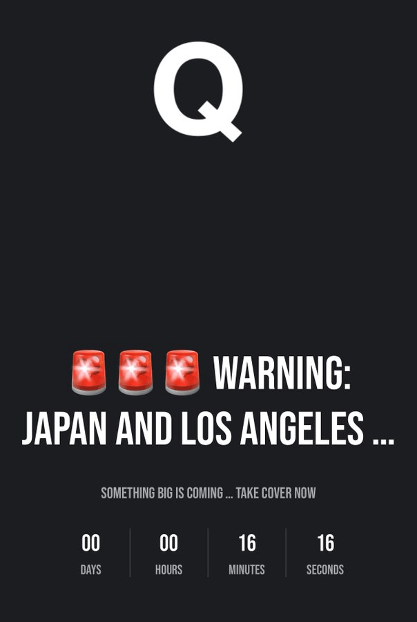 WARNING: LOS ANGELES AND JAPAN … SOMETHING BIG IS COMING … TAKE COVER NOW. http://QOFFICIAL.NET