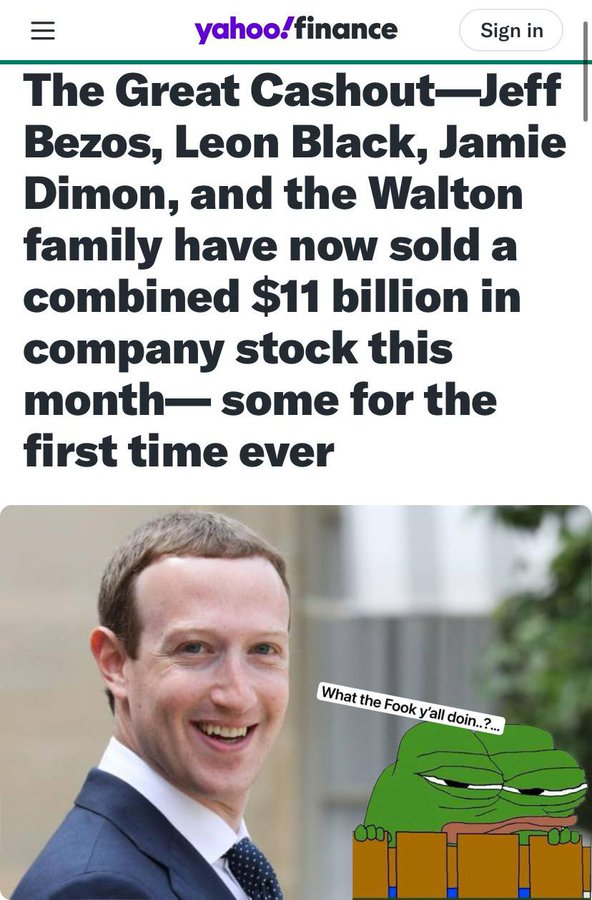 What do they Know we don’t? High-profile CEOs, Founders, and Heirs are Selling Stock by the Bucketload • Jeff Bezos sold Amazon shares worth $8.5 billion in multiple transactions this month. • Jamie Dimon, CEO and chairman of JPMorgan Chase, sold $150 million in stock… Show more
