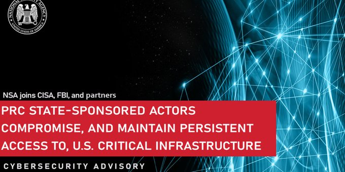 FLASHBACK: U.S. and International Partners Publish Cybersecurity Advisory on People’s Republic of China State-Sponsored Hacking of U.S. Critical Infrastructure.. -CISA The advisory included “communications, energy, TRANSPORTATION, and water and wastewater, in the United… Show more