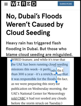 Wired magazine published an article on Wednesday, titled, “No, Dubai’s Floods Weren’t Caused by Cloud Seeding.”