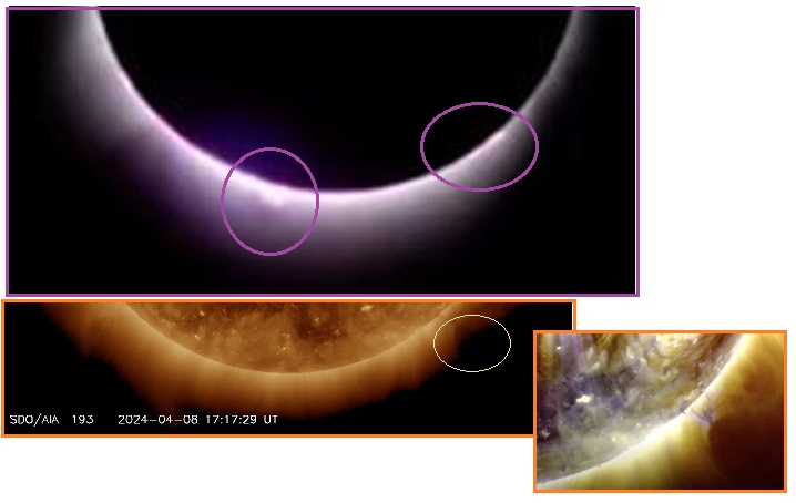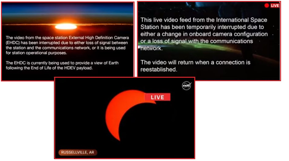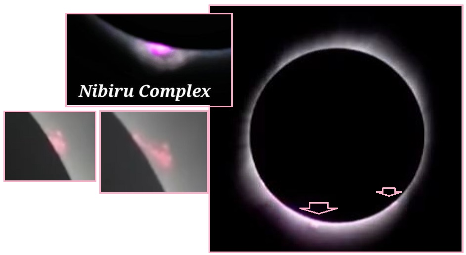 From the start of the Eclipse day what was obvious were the many Moons in the vast tail of Nibiru. When they showed up along the Corona they were round and usually pink, but distinctly obvious. NASA reacted to this visibility by reducing what could be seen on their live stream to two colors – orange and black. When asked what all the pink below the Sun was by TV talking heads, NASA had no answers. TheRealPax Live Stream available earlier in the day did not play those games. Thus a photo from Pennsylvania showed pink Moons.