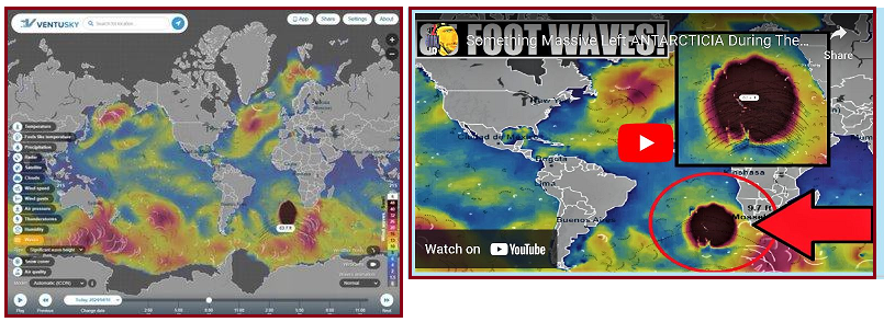 ZetaTalkAnswer4/11/2024: Zetas Right Again! In 1999 we predicted that as the Pacific compressed it would put pressure on the Antarctica Plate on the Pacific side causing Antarctica to nose up between the tip of S America and the tip of S Africa, forming New Land there. Where this process has just started, the rising land mass caused a huge displacement of the S Atlantic waters. A displacement can act like a tsunami if directed in a particular direction, but if not directed will throw the water into the air, which is what happened on April 10.