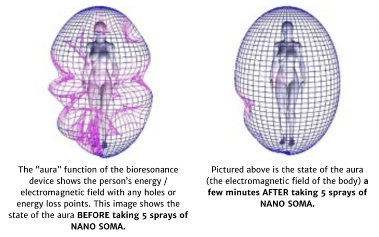 Italian Naturopath Giacinto Olivieri shared a bioresonance image showing NANO SOMA’s effect on a person’s energy field just minutes after taking it.