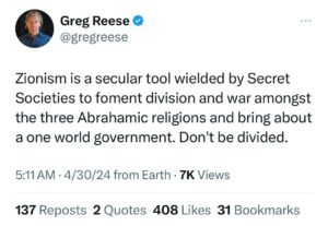 “The Avatar Zionist Netanyahu who is not of Hebrew descent but a Zionist Khazar, sings their favorite song …. anti-semitism.