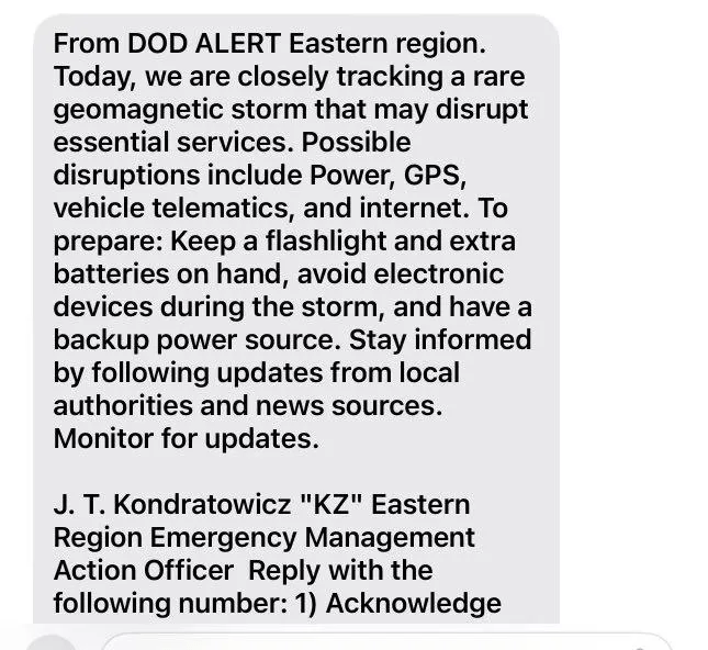 I just confirmed with multiple active government sources that they also got the alert from the DoD alert system, via Alexandria Phone number, 703 454 0563, calling and warning for everyone to get a flashlight, and to expect potential power outages from a solar flare.… Show more