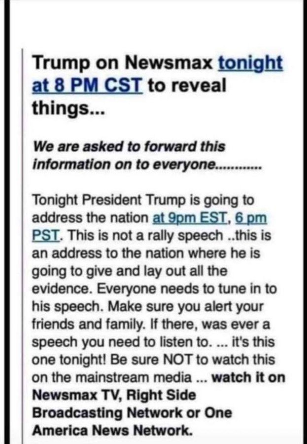 ALERT..ALERT..ALERT President Trump is going to make massive reveals tonight on the 3 main Conservative Broadcast Networks. Tell everyone to watch! @QConnected17