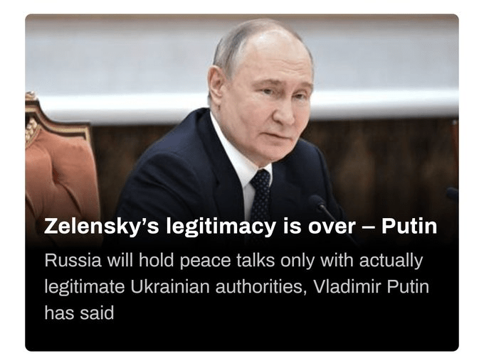 The twists and turns in the movie script just don’t stop. President Putin is now revealing that Ukraine has no legitimate leader because Zelensky’s term has expired. This means any peace negotiations would be moot and Putin is saying he wants a lawful figure to deal with.