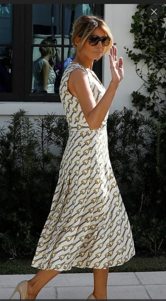 I’ve spoken at length about the “costumes” in the movie. These aren’t outfits Mel pulls out of the closet willy-nilly on a whim or depending on the weather and the occasion. They are expensive, designed, and perfectly tailored well in advance. If you think logically, there had to be a Plan for this to be the case. They are befitting a First Lady and they are designed to send a message. They are part of the comms. They are the equivalent of flags and semaphore.