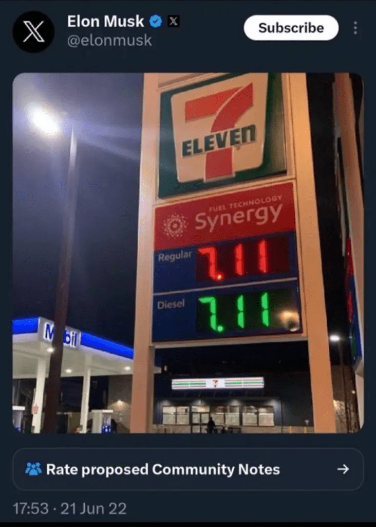 Anyone else remember when Elon was randomly posting this image of 7/11 about two years ago?