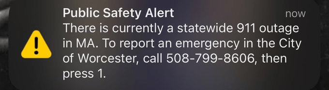 #BREAKING: The 911 system is down STATEWIDE in Massachusetts, and there is no ETA on it returning. Boston police are literally recommending people go FIND a police officer or “fire box” to pull if there’s an emergency. This comes just weeks after 15 other states suffered… Show more