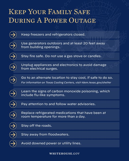 More and more Texans’ power is being restored – but we have a long way to go to help folks recover from Hurricane Beryl. I’ll continue working with the state to get resources to those that need them. In the meantime, learn how to keep your family safe during a power outage: