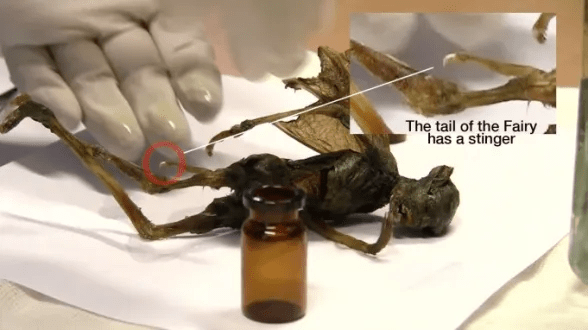 I’d forgotten about some of those anomalies Derek posted and it reminded me of the “Fairy” post[s] I did many years ago. At first we weren’t sure whether it was real or a fabrication until later getting confirmation as revealed in that post linked above but it was intriguing and generated a humorous comment from a reader who said “that’s no fairy!” When it has teeth like we saw in the video and a barbed tail… yeah, no fairy—not the kind we envision. Unfortunately those videos aren’t available in the post now but I’ve included one below. I like the way they arranged leaves to represent how their wings may have looked.