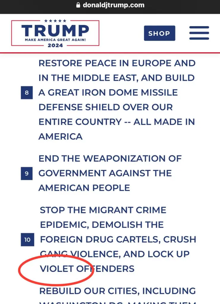 “WOW! Trump’s Agenda 47 ok his website has “violent” spelled as VIOLET and the “shooters” name was…