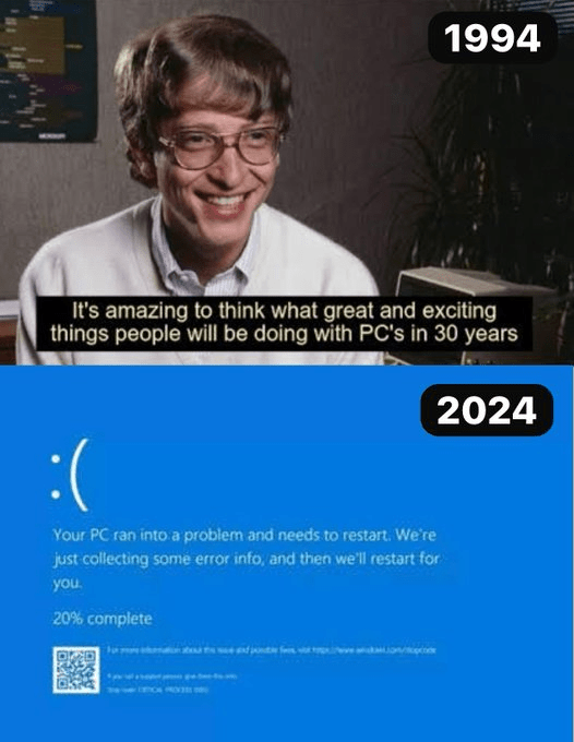 Once again, a monopoly on computer software and operating systems can make for some ugly times. Microsoft, Crowdstrike… cabal-run companies. They can giveth, and they can taketh away.