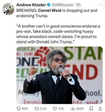 Dr. Cornel West is going on the ballot as an Independent. This could split the black liberals’ votes and help Trump.
