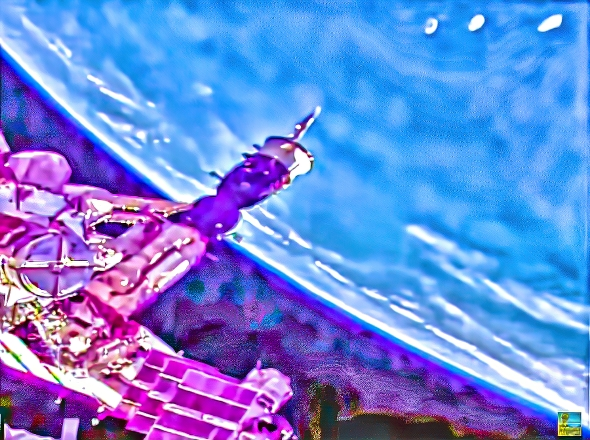 The idea that three Radionnic Scout Ships could be sitting on the portal opening is not that far fetched. In fact, it’s fact as shown by Fig. 3 below, which clearly shows three exact type Radionnic amigos sitting just off the Space Station. The Space Station photo popped up in the September 8, 2017 edition of the ‘UK The Sun’ newspaper, featuring a clear and unambiguous Negative pole Radionnic Mobile Scout type condensation, a clear and distinct Positive pole partner, and a not so clear and distinct Positive pole type second ship all sitting together. Nobody at the Newspaper end had any idea what they were, or even if they were actually crafts. But, you kind of had to know that the Ships themselves knew they were going to get photographed out the window of the Space Station, cause that’s what people do. Convincing fervent UFO-ologists that Radionnic Ships are real is one thing, convincing fervent scientific sceptics and Newspaper journalists is quite another, who both tend to deny out of hand anything not of the material plane as their affliction. The skate board like oval feet under the Ships are an magnetic effect from their field.