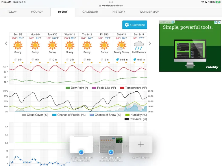 I keep talking about our weird weather schedule here in Paradise Valley and in case it seems a little far-fetched, below is a screenshot of our weather page early Sunday morning showing rain is predicted next Sun-day, which is the only day of the week we’ve had any rain in my neighbourhood in over 9 weeks. We didn’t get our monsoons again this summer so I suppose we should be happy when we get rain at all.