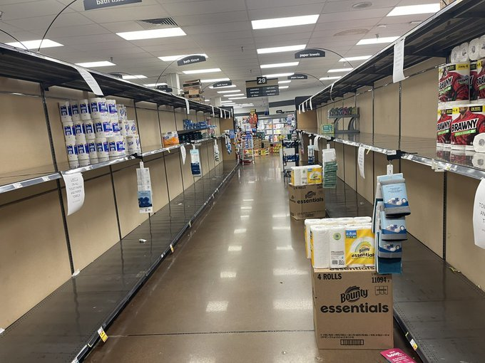 I didn’t see anything about it on Twitter/X, but there is a post about Kroger in Collierville with empty shelves. [below] What’s the deal? Are people trying to generate fear and chaos in an already volatile situation? Are they trying to cause panic buying? Collierville is near Memphis and there has been no mention of anything much happening in that part of the state. I find this news highly dubious.
