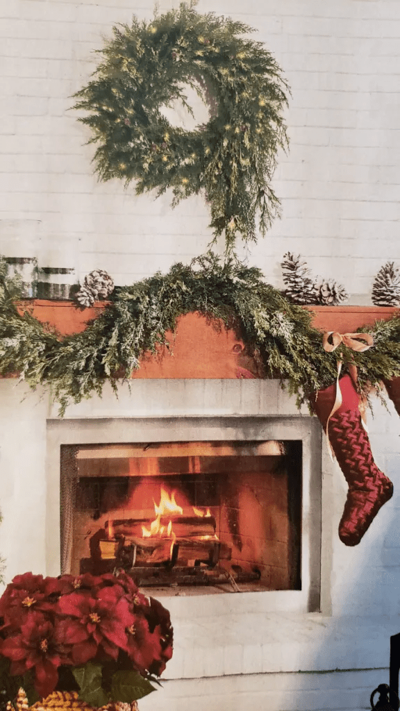 A catalogue with the following caught my eye because I’ve never seen a wreath like this before. I like it.