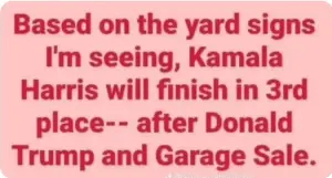 On a lighter note, I had to include this reference to the polls based on yard signs, which I reference from time to time as indicators of public opinion.