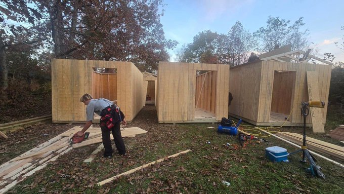God bless the Amish. From Friends of Swannanoa: BLACK MOUNTAIN AREA NEEDS HELP. BASE CAMP NEEDED CLOSE TO Black Mountain! We have 56 passenger bus load groups of skilled Amish carpenters coming down from Lancaster PA weekly to help build tiny homes for Cabins for Christ … WE ALREADY SIGNED UP WITH CABINS FOR CHRIST BUT NONE OF THEIR BUILD SITES HAVE OVERNIGHT CAMPING.. Is there an empty building or Warehouse in the Black Mountain area that our group could use for a base camp the next few months? We are bringing our own supplies and would be 100% self-sufficient…. Just need a place under roof to sleep and house our volunteers from Monday night through Friday night every week. Pics of a few that we built last week at a private residence thanks to Michael Payne. We may be sending a few guys to help him out as well again. #ncpol