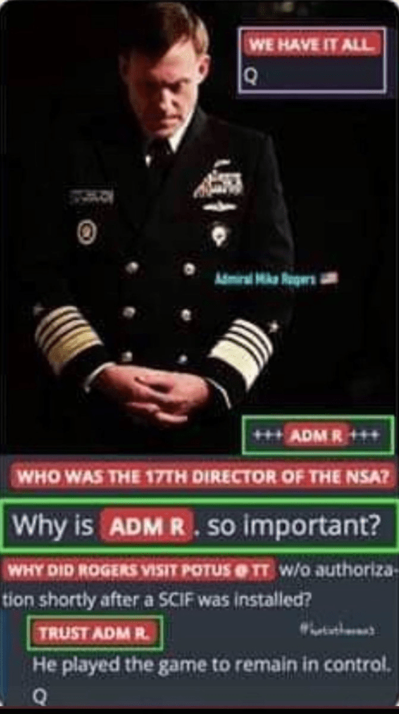 +++ Admiral Rogers+++ Who was the 17th Director of the NSA? Why is Admiral Rogers so important. Why did Admiral Rogers visit POTUS at Trump Towers without authorization shortly after a SCIF was installed? Trust Admiral Rodgers. He played the game to remain in control. Q … Show more