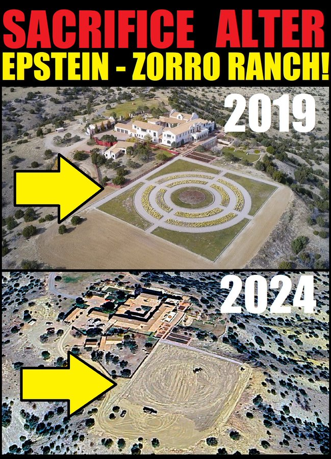 Jeffery EPSTEIN- ZORRO Ranch in New Mexico “Satanic Sacrifice Alter” DESTROYED By new Owner! As MANY of you know a MASSIVE property in New Mexico owned by Jeffery Epstein is said to be the location of HORRIBLE things such as Satanic Sacrifices as well as Human trafficking. The “ALTER on this property is said to be a spot where Epstein and other prominent people engaged in satanic type rituals. He even had his own AIR strip to fly people in and out JUST like Epstein Island! As you can see since the property was sold back in summer of 2023 they have immediately destroyed that SPACIFIC Alter… I wonder why! Coordinates listed below!