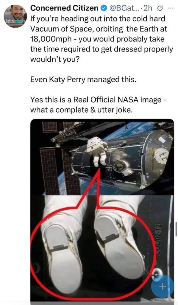 Are we to believe that NASA sent these bimbos up into “space” wearing boots on the wrong feet? Isn’t that what we’re seeing in the image below? How many more ways could the White Hats show us the folly of the NASA fake space programme?